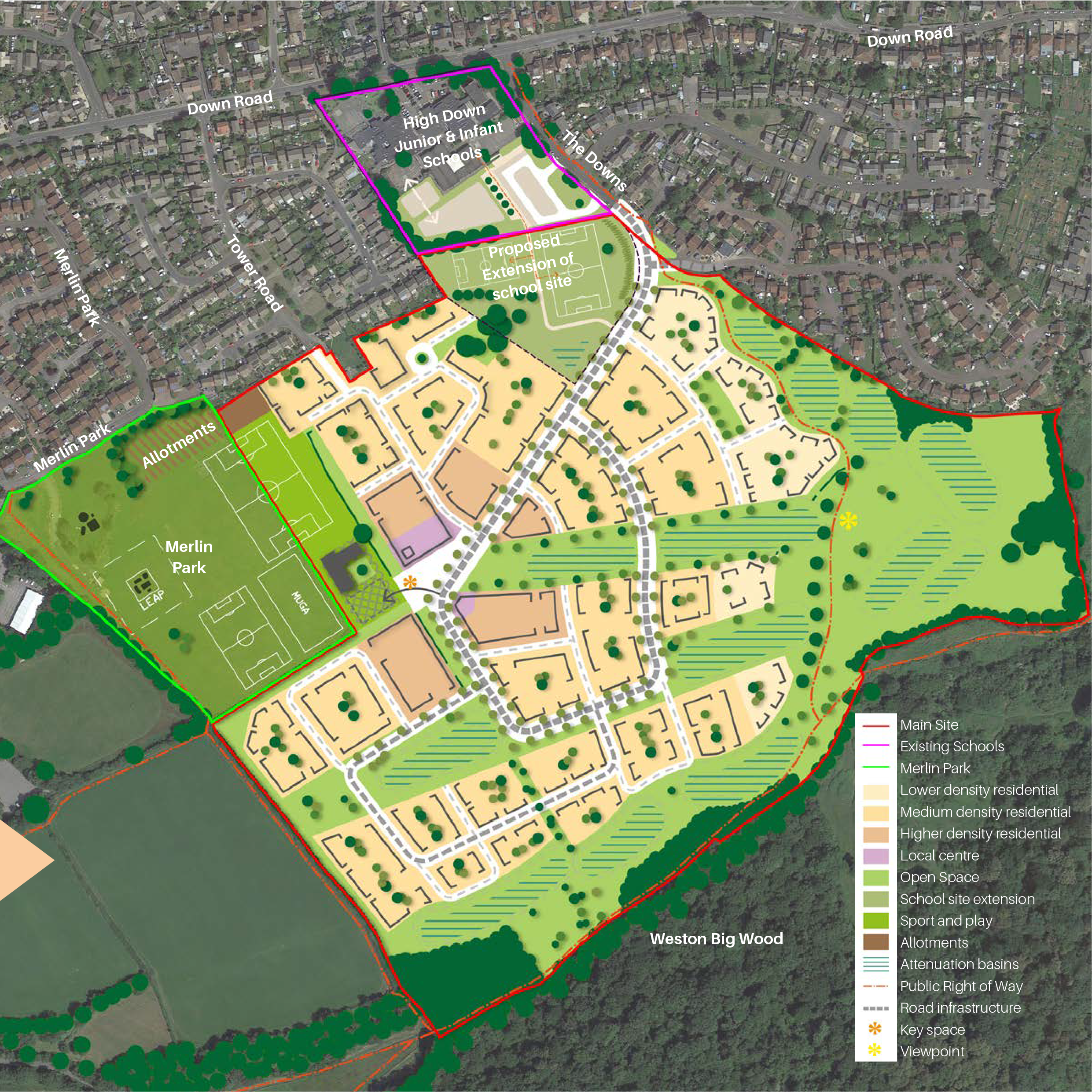 The site adjoins High Down Infant and Junior Schools, and the proposals include potential land to support the future needs of the school.