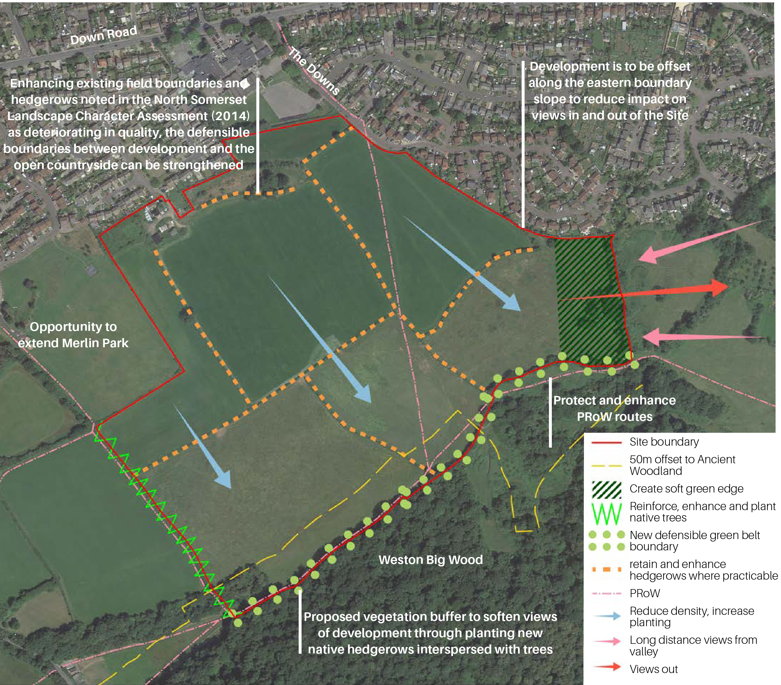 A green wedge along the eastern boundary to protect the amenity of neighbouring homes at The Downs